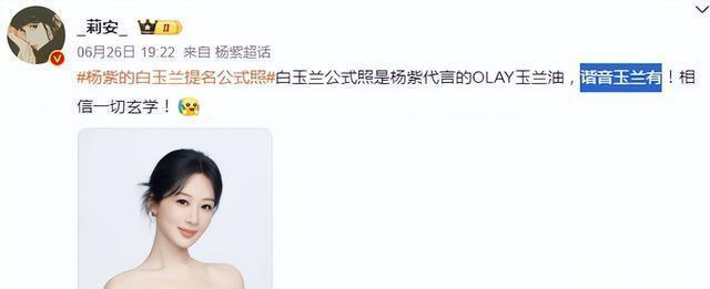 更可笑的是还有哲学加持,有网友说杨紫白玉兰公式照选了玉兰油告白图,玉兰油=玉兰有。