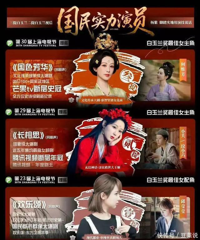 再看杨紫,杨紫其实仍是三提白玉兰了,一次女配+两次视后。
