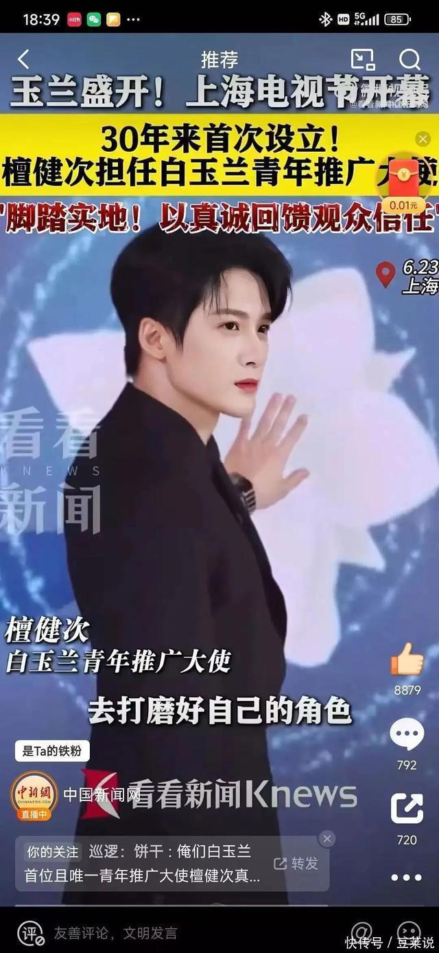漂后插句嘴哈,扶携新东谈主有莫得可能是30年来,初次确立白玉兰后生推行大使这种?檀健次亦然前程了。