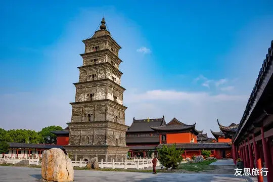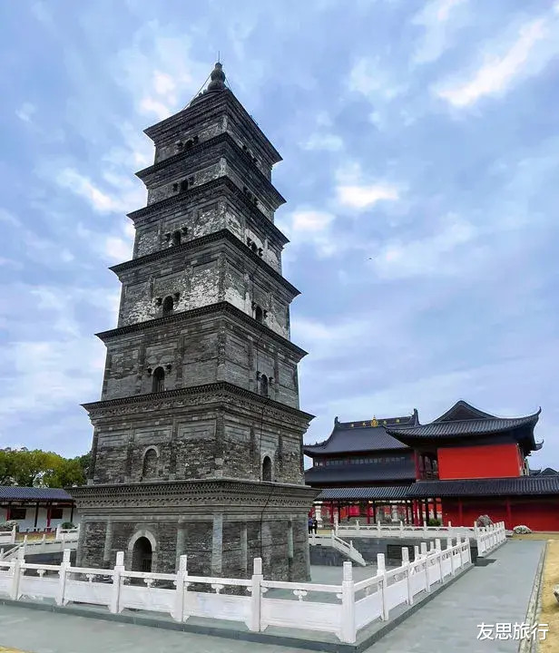 走到京杭大运河的河堤上,你会看到一个飘荡的奇不雅——镇国寺塔。