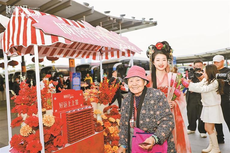 “花仙子”在深圳湾港口为市民搭客送花。受访单元供图