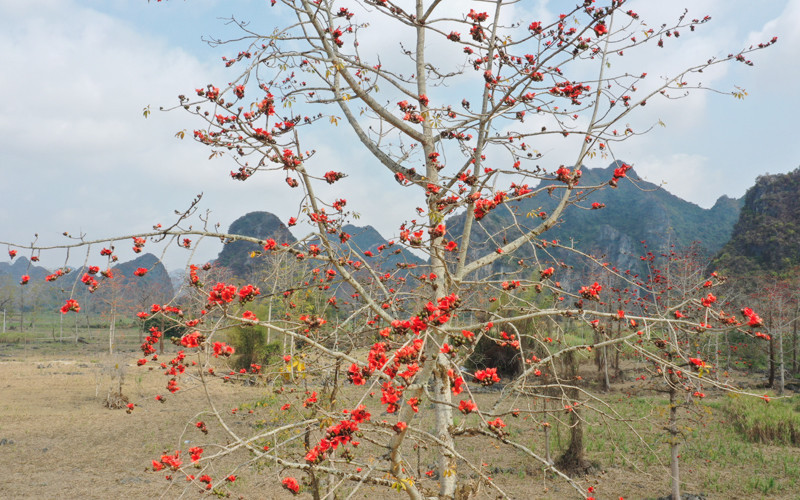 春回地面,广西崇左市龙州县迎来木棉怒放的季节。原野里、河岸边、街谈旁,木棉花竞相绽开,鲜红如焰的花朵缀满枝端,绘就了一幅勃勃期望的“红棉闹春图”。