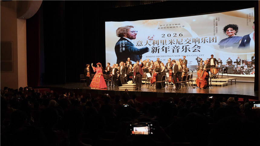 元旦之夜,意大利里米尼交响乐团在上海商城剧院奏响经典旋律。艺术家与申城乐迷在音乐中共迎新年,掌声与喝彩声将现场脑怒一次次推向昂然。东说念主民网记者 沐一帆摄
