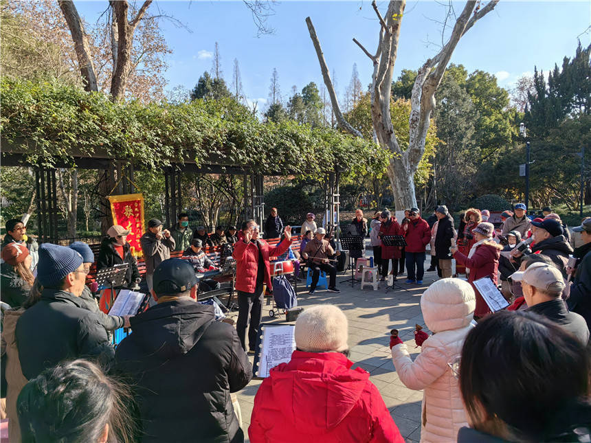 1月2日下昼,位于虹口区的鲁迅公园内,冬日暖阳下,老年一又友们王人声唱起《红星歌》《绣红旗》等经典歌曲,欢庆元旦佳节。东说念主民网记者 唐小丽摄