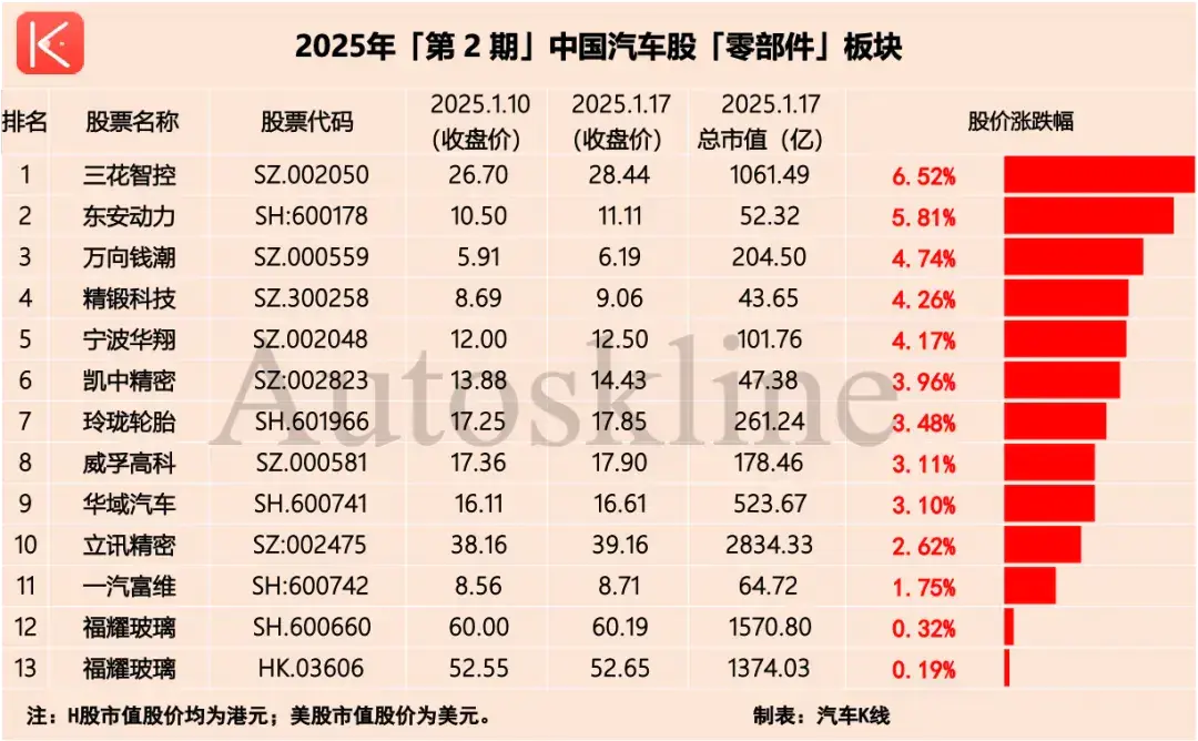 零部件板块股价平均飞腾3.39%,个股一王人飞腾;涨幅前三为三花智控、东安能源和万向钱潮。
