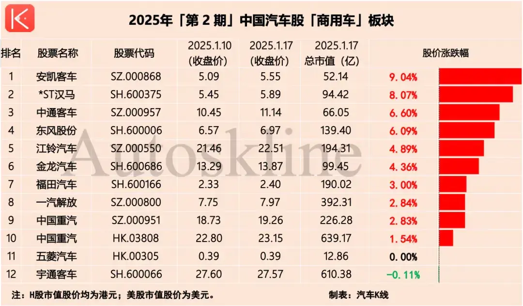 商用车板块股价平均飞腾4.1%,除宇通客车微跌0.11%、五菱汽车持平外,其余一王人飞腾。