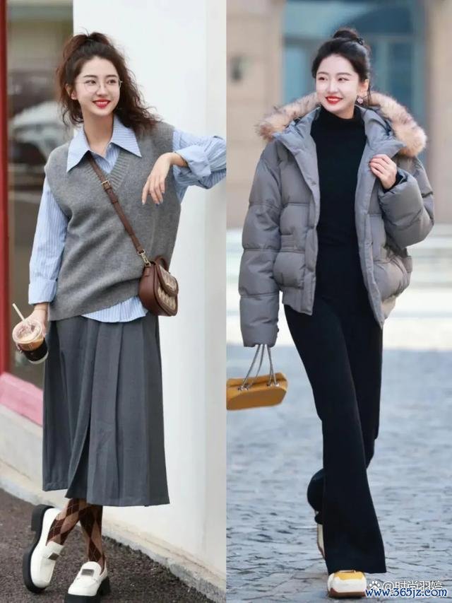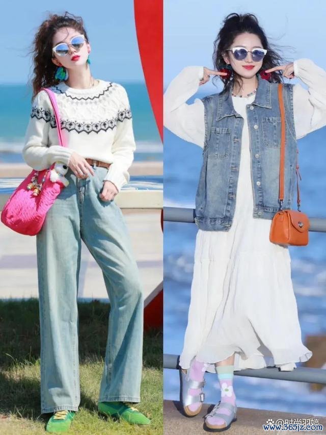 不外,所在的城市不同,天气温度不同,是以遴荐的穿衣作风当然有所差别。如果你是在南边,这个时辰如故遴荐左边的这一套,用灰色的马甲内搭一件蓝色的条纹衬衫和灰色的半身裙就够了,脚上踩着一对白色的乐福鞋,减轻驰松穿出漂后感。