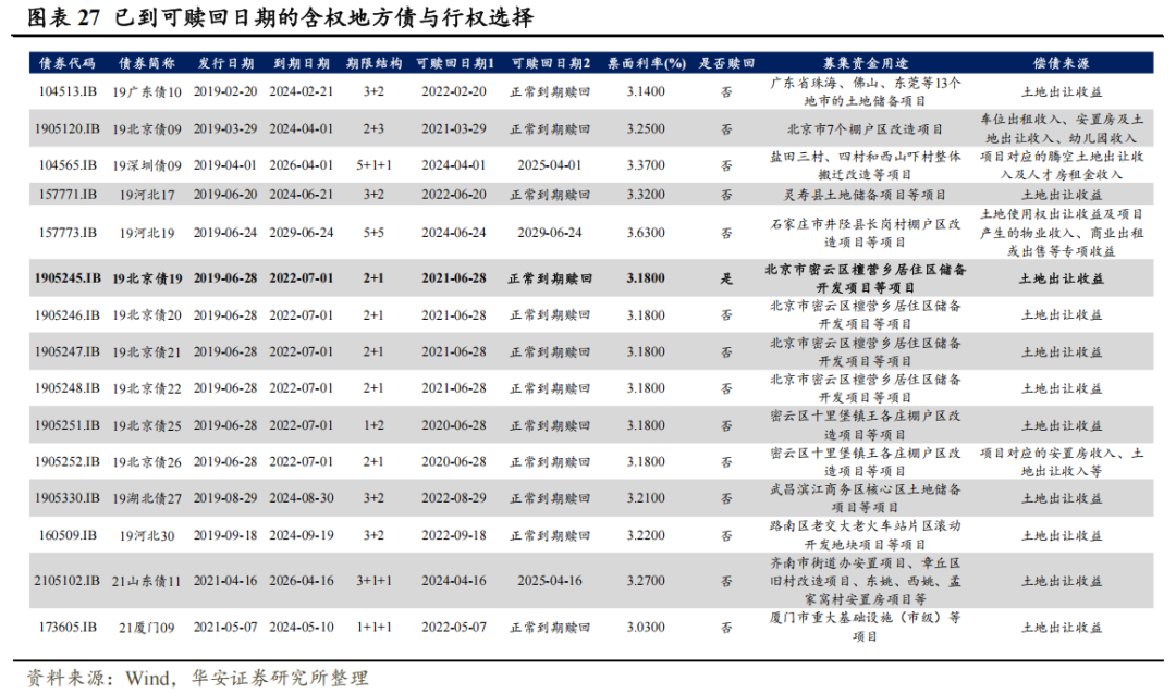 从行权情况来看,到期弗成权已成主流趋势,15只已到可赎回日历的债券中仅1只提前赎回。适度2025年1月,共有15只含权场地债已到可赎回日历,其中12只平日到期赎回,3只仍存续。15只债券中,仅有一只债券提前赎回,即2019年6月刊行的19北京债19,于2021年6月1日公告提前赎回。其余14只债券均平日到期赎回,或已过行权日但选拔弗成权,可见到期弗成权已成主流趋势。不雅察偿债起原不错发现,地盘出让收益、房钱是主要的偿债起原,连年来房地产商场低迷导致偿债资金不及可能是到期弗成权的主要原因。