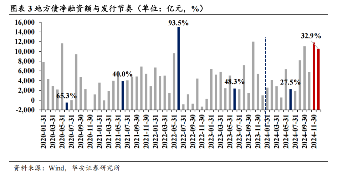 2024年上半年,场地债刊行节拍较往年彰着放缓,10万亿决策建议后刊行加速。一揽子化债计谋实行以来,场地政府对债券刊行多持了一份审慎,2024年上半年场地债刊行节拍较往年彰着放缓,上半年场地债净融资1.87万亿元,仅占全年刊行比例的27.5%,为近五年最低,这也导致了钞票荒的加重。下半年,跟着10万亿化债决策的建议,场地债刊行彰着加速,决策建议后的两个月内,场地债刊行量占全年刊行量的比例高达32.9%。