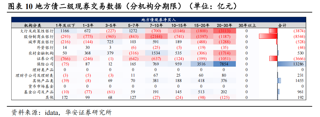 1)从二级现券交游数据来看,保障为场地借主力买盘,主要确立15-30年超长债;大行及计谋行、股份活动场地借主力卖盘,主要卖出7-10年的长债和15-30年的超长债。2024年的二级交游商场上,6类机构净买入场地债,4类机构净卖出场地债。主力买盘为保障,主要确立超历久场地债,净买入15-20年场地债3516亿元,20-30年场地债7854亿元。主力卖盘为大行及计谋行、股份行,其中股份行二级卖出长债和超长债,净卖出7-10年场地债2144亿元,15-20年场地债1597亿元;大行及计谋行二级卖出超长债,净卖出15-20年场地债1800亿元,20-30年场地债3113亿元。