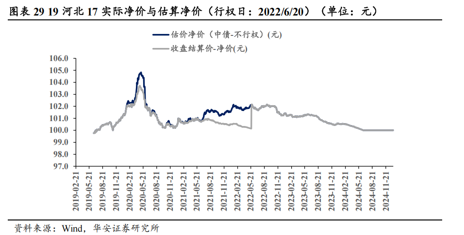 从历史来看,含权场地债的第一类投资契机在于行权日前的调遣契机。行权日前一段时期内,现实价钱低于合理估值水平,周边行权日时现实价钱向合理水平回想,提前持有可赚取老本利得。到达行权期前一年傍边,出于提前赎回裁汰现实利率的担忧,含权场地债需要提供更高的现实利率才具有满盈的勾引力,因此发达为成交利率高于中债估值收益率、成交价低于中债估值净价。在周边行权日时(一般为1个月傍边),咱们不雅察到成交价向合理估值飞快回想,举例19北京债25的可赎回日历为2020年6月28日,其净价于2020年7月1日大幅普及,由100.0051元升至101.7195元,普及1.7144元,升至与中债估值净价换取的水平。在14只已到行权日的含权场地债中,11只齐不雅察到了上述国法。举例19广东债10于行权日前7天净价上升,19河北17于行权日前4天净价上升。其中,比较独特的是,19河北30在行权期前四个月时,现实价钱就已回想了合理价钱。