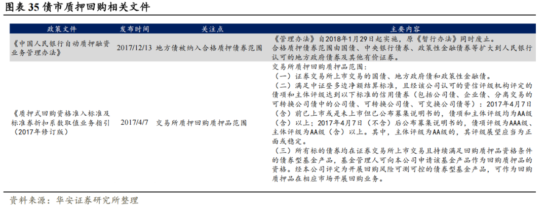 场地债纳入及格质押债券畛域:2018年12月13日,央行发布了《中国东说念主民银行自动质押融资业务处分观点》,自2018年1月29日起践诺,原2005年发布的《中国东说念主民银行自动质押融资业务处分暂行观点》同期废止。《处分观点》从融资空间、融资利率和质押债券畛域三个方濒临自动质押融资业务进行了优化。在第三个方面,将场地债纳入了及格质押债券的畛域内,现有的及格质押债权畛域包括国债、中央银行债券、计谋性金融债券、东说念主民银行招供的场地政府债券特殊他有价证券。