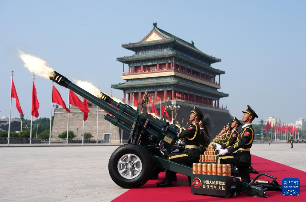 56门礼炮皆鸣80响,尊容肃肃,响彻云霄。