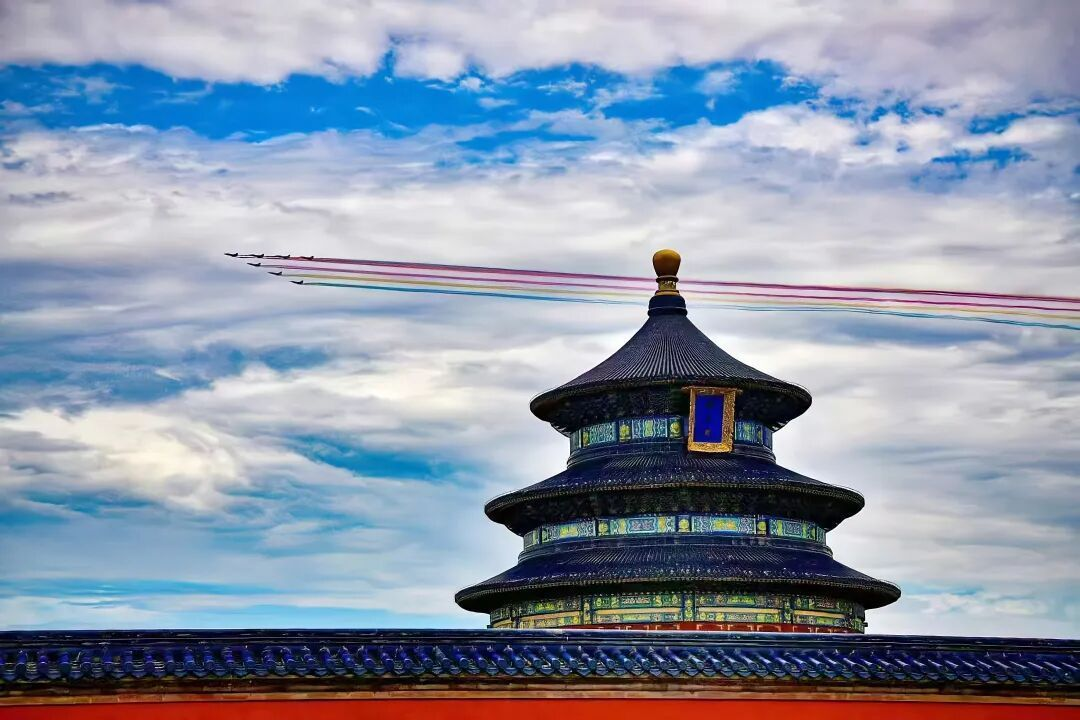 由远及近的飞机轰鸣声,把我的想绪拉回,是空中护旗梯队来了!