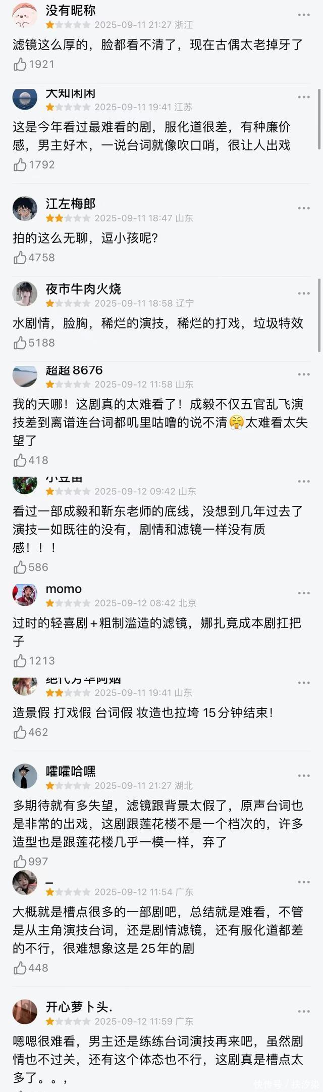但愿以后的剧组在制作剧集时,能多在剧情打磨、演员挑选和制作质料凹凸功夫,别再让不雅众一次次失望了。