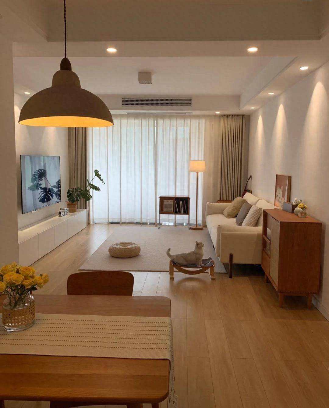 客厅配色从简簇新,以原木和米色系为主,营造出当然、簇新的氛围,莫得交加颜色,却散漫着舒坦宜东谈主的气味。