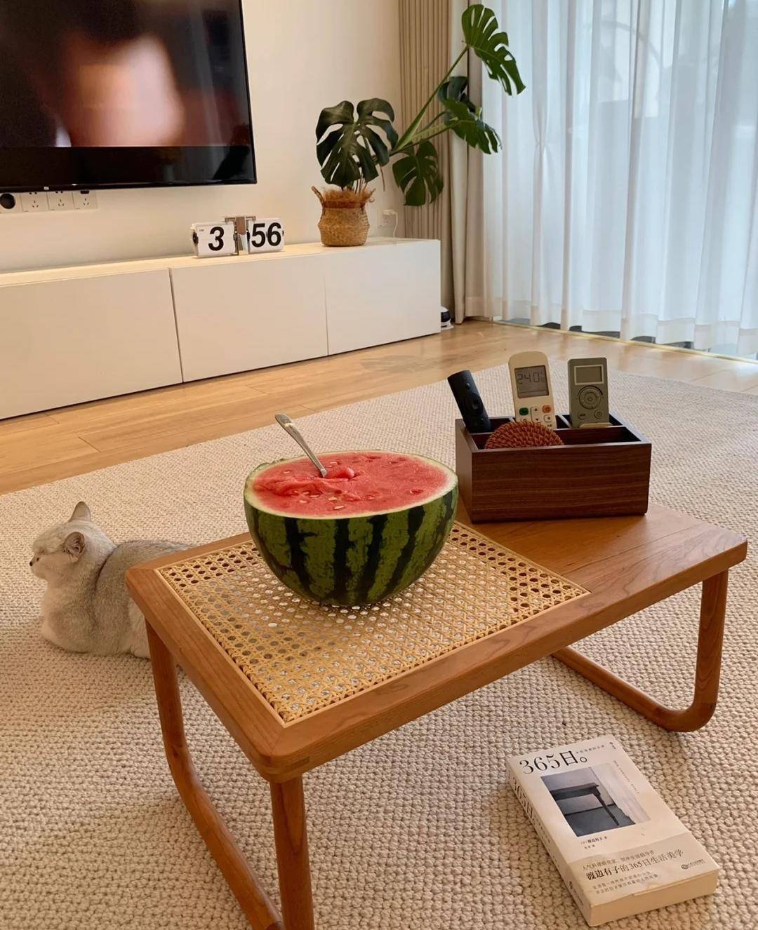 茶几被小边几取代,工致打算检朴空间且更实用,使客厅显得愈加通透亮堂。而胡桃木遥控器收纳盒则是点睛之笔,既实用又增添精致质感,让空间更完满。