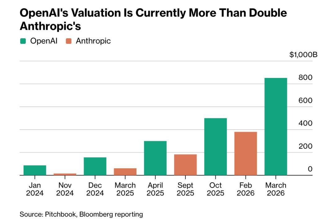 OpenAI 合座估值已是 Anthropic 的两倍以上